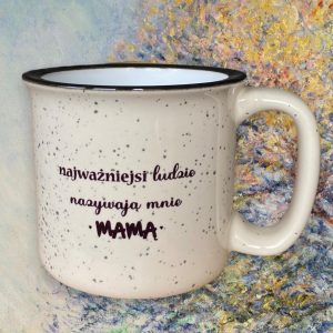 Kubek emaliowany ceramiczny z własnym tekstem.