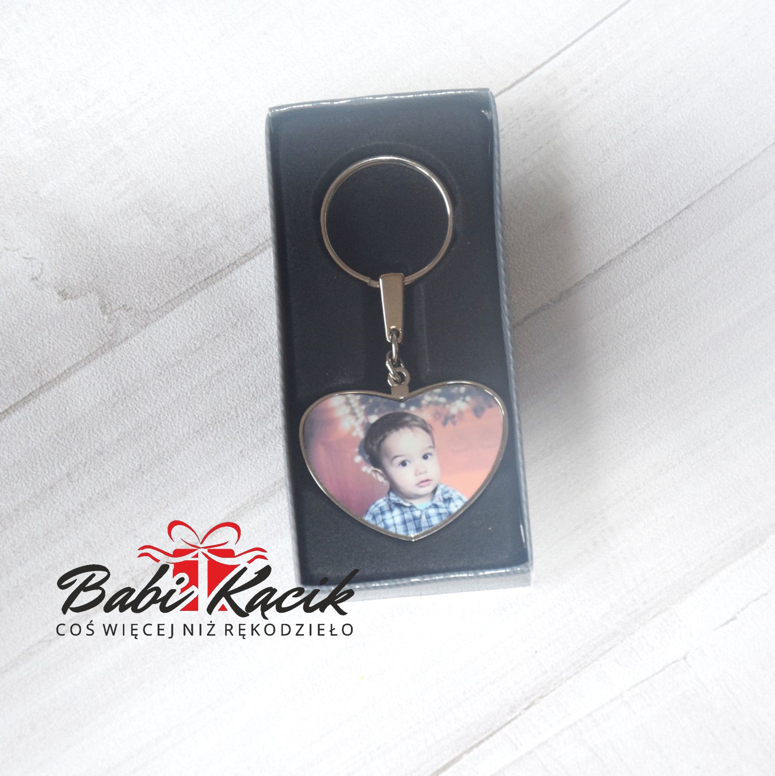 Metalowy brelok do kluczy serce ze zdjęciem i dedykacją dwustronny