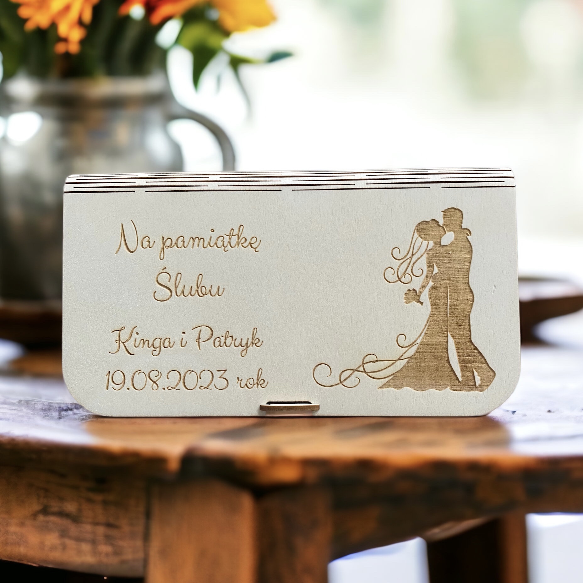 Pudełko handmade drewniane na banknoty prezent na Ślub Wesele