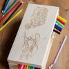 Skrzynka drewniana pudełko na kredki drobiazgi Piórnik grawer bajkowy