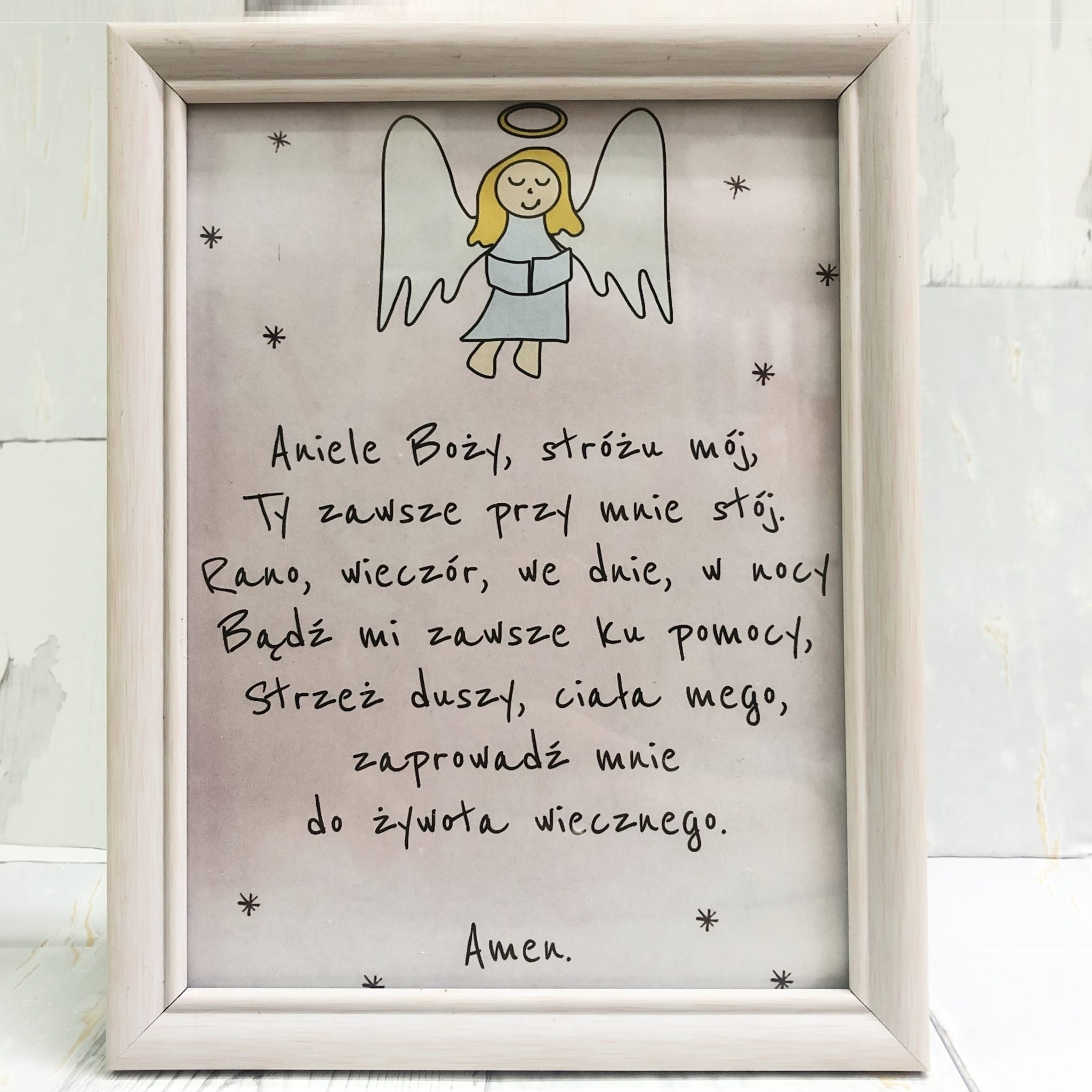 Ramka Modlitwa Aniele Boży Prezent Plakat Obrazek 15 x 20 cm Różowa