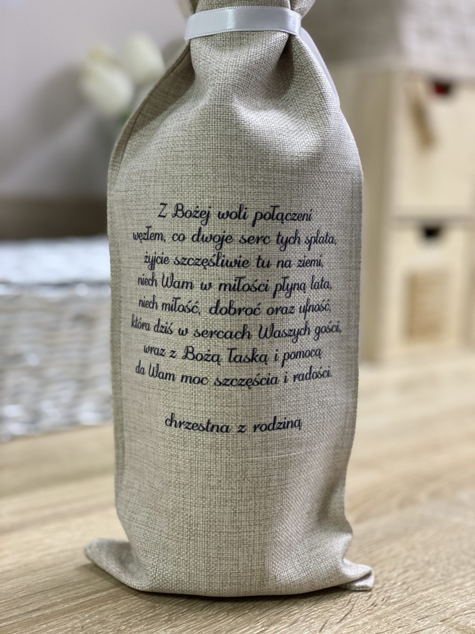 Worek płócienny opakowanie na alkohol na wino ślub wesele nadruk