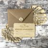 Zaproszenie drewniane grawer VOUCHER usługi zestaw koperta